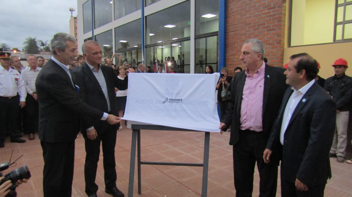 OBERA. En la tarde de este martes, el gobernador de Misiones, Hugo Passalacqua, acompañado del vice y candidato a primer mandatario provincial Oscar Herrera Ahuad, el presidente del IPS, Carlos Arce (que comienza a aparecer en los actos) y el intendente local, Carlos Fernández, inauguraron la primera etapa del nuevo edificio municipal, a 10 años del siniestro que consumió la estructura original de 1945.