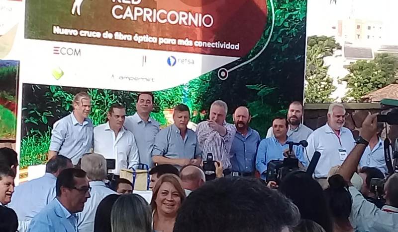 Entre las autoridades presentes, estuvieron: El gobernador de Misiones Hugo Passalacqua, acompañado de sus pares de Chaco, Domingo Peppo, y de Formosa, Gildo Insfrán, acompañados por parte de sus respectivos gabinetes, el intendente obereño, Carlos Fernández, junto a intendentes de municipios vecinos, representantes del gobierno de los estados brasileños limítrofes, representantes de las empresas tanto privadas como públicas que integran la Red Capricornio, autoridades nacionales de ENACOM, entre otros.
