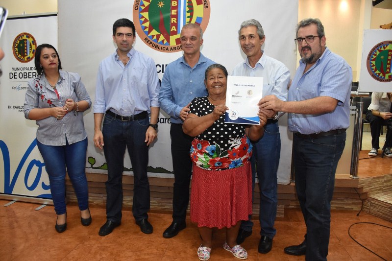 OBERA. Por quinta vez, la Municipalidad procedió a la entrega de títulos de propiedad a vecinos del populoso barrio de 100 hectáreas y Villa Torneus. En esta oportunidad, fueron 54 familias, completando 250 desde la creación de la Oficina de Tierras.