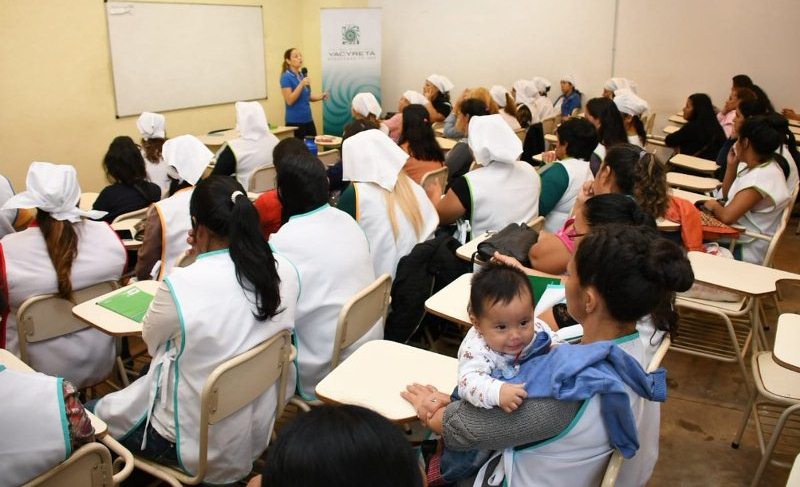 La EBY realizó una articulación con la Facultad de Ciencias Exactas, Químicas y Naturales, de la Universidad Nacional de Misiones (UNAM) quienes fueron los encargados de dictar el curso a los equipos voluntarios de cocina de los 23 servicios alimentarios ubicados en los barrios San Isidro, La Nueva Esperanza, Virgen de Fátima, Nuestra Sra. del Rosario, Yohasá, Campo Bauer y Porvenir II.