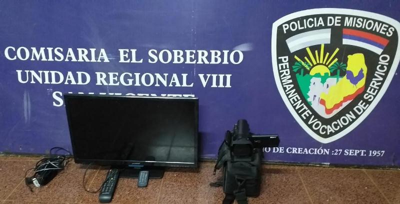 EL SOBERBIO. Efectivos de la comisaría de El Soberbio recuperaron ayer por la noche una cámara filmadora Sony y un televisor LED de 24’. Los costosos equipos fueron robados de la Escuela N°940 situada en el paraje San Ramón.