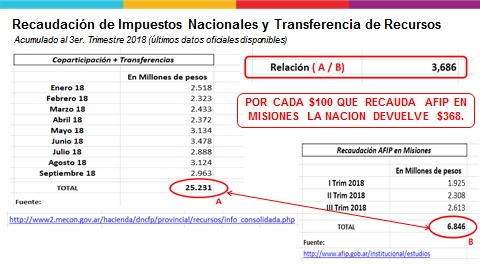 POSADAS. Anoche, se realizó la presentación de propuestas del equipo que lidera Humberto Schiavoni, candidato a gobernador de «Juntos por el cambio» de la provincia. Marta Amigo Gottschalk, especialista en finanzas y candidata a concejal por la ciudad de Posadas fue la primera en tomar la palabra: «les voy a contar el detalle de la coparticipación de todo el 2017 y parte de 2018. Durante el 2017 la coparticipación de Misiones fue de 24.500 millones de pesos y, por los impuestos que cobra, la Afip recibió 7 mil millones. Pero para ser más concreta, de cada 100 pesos que se recaudaba en la provincia por impuestos nacionales, Misiones recibió 345 pesos”, detalló ante los presentes. Continuó diciendo “en 2018, de cada 100 pesos que se recaudó, Nación giró 368 pesos a la Provincia.» Afirmó luego que, por esa razón, hay fondos para realizar todo lo que el equipo propone.
