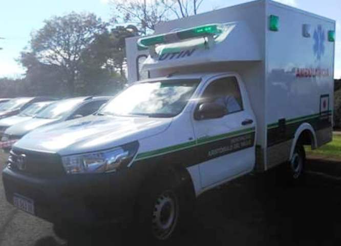 ARISTÓBULO DEL VALLE. El Intendente Eldor Hut y el Secretario de Salud Dr. Armando Parodi presentaron esta mañana la ambulancia donada por el Gobierno de Japón a la Municipalidad de Aristóbulo del Valle.