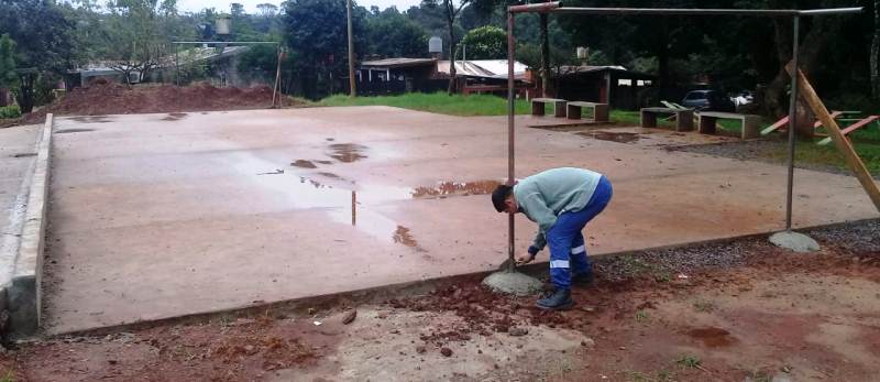 Entre los trabajos destacables en zonas céntricas, también intensifican obras en los barrios, como la construcción de un playón deportivo en la plaza de Villa Kindgreen ubicado en calle Sargento Cabral y Patagonia. La instalación de juegos infantiles en la nueva placita construida por el municipio en Barrio Norte, ubicada frente Centro de Salud sobre calle Ñacanguazú.