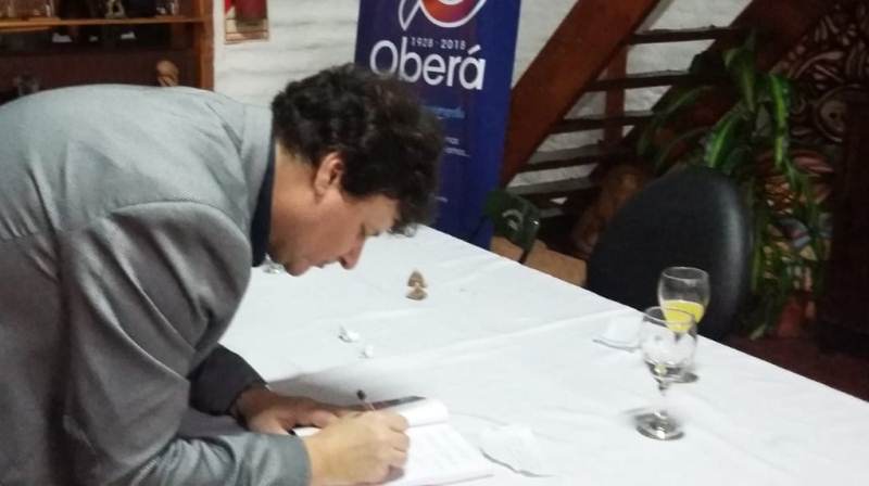 Es así que continuó luego hablando de la realidad política que afectó a la sociedad obereña y que nos trae a lo que vivimos en la actualidad, por ello recordó que escribió el libro basado en hechos que sucedieron desde que arribó a la ciudad (año ). «Al llegar, los obereños éramos gobernados por Tito Rindfleisch» y sobre eso aseveró «el tipo que más daño le ha hecho a Oberá, fue electo tres veces por la gente. Somos responsables de ésto porque mientras sucedían éstas cosas, éramos muy pocos los que hablábamos. $62 millones de deuda y tiene un séquito alrededor, debería estar explicando ante un juez ésto. Y si gana el 2 de junio la Renovación, cosa que es muy probable, seguirá sin ser juzgado y siga en Brasil o por ahí.»