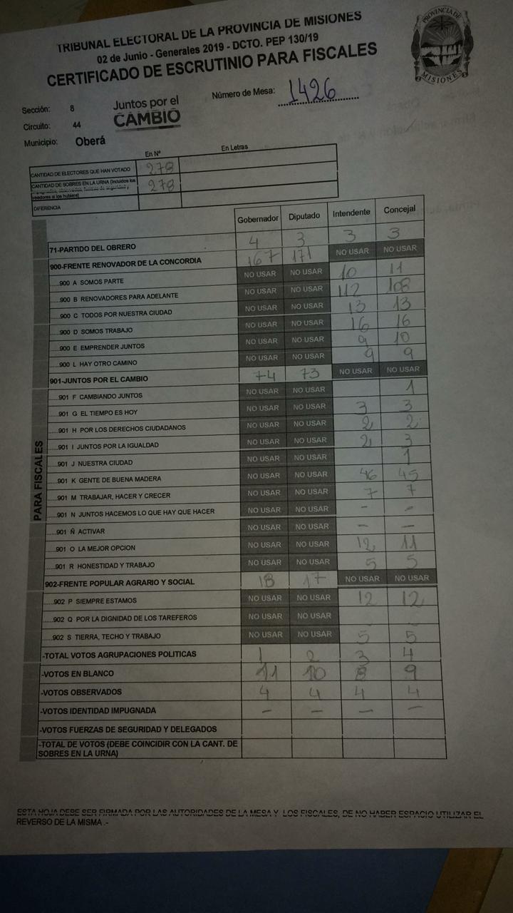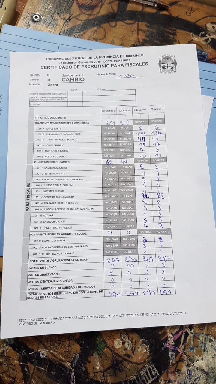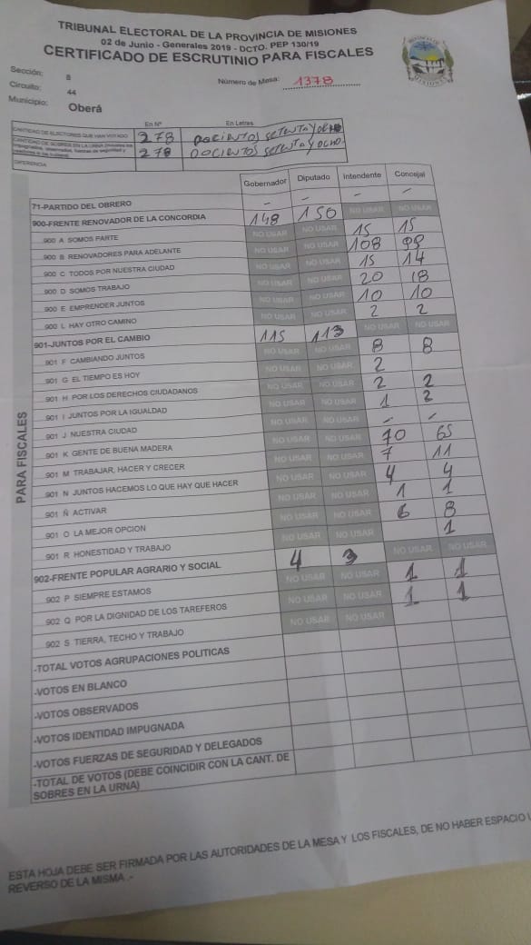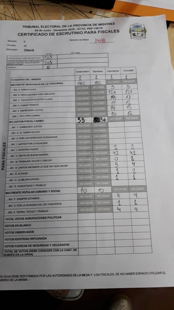 OBERA. Los comicios cerraron a las 18 horas sin mayores incidentes. En la escuelas 660, la diputada y candidata a intendente, Guiliana Perini estuvo más de media hora fuera de la institución ya que las autoridades no la dejaban ingresar. Recurrió a sus abogados. Dentro, no dejaban ingresar a sus fiscales a los cuartos oscuros para el conteo. Apuntó contra la Renovación. El porcentaje de electores alcanzó casi el 80 % en Oberá y Campo Viera, 82 % en Campo Grande y más del 90 en Pozo Azul, donde se eligen autoridades por primera vez.