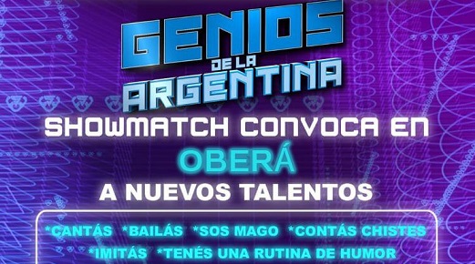 OBERÁ. Show Match convoca en Oberá a nuevos talentos. El casting será el viernes 14 de junio en el Cine Teatro (San Martín 1069) a partir de las 10 de la mañana.