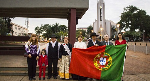 Integrantes de la Colectividad Portuguesa de Oberá, participaron del izamiento de la bandera en el mástil del Centro Cívico de Oberá.