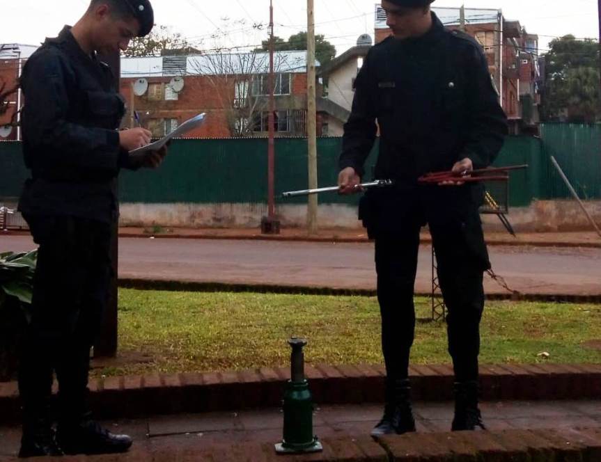Por otro lado, el integrantes del Comando Radioeléctrico Centro recuperaron un gato hidráulico y una llave tipo prensa, estos elementos fueron denunciados por Claudio J. como sustraídos junto a otros objetos como ser: una caja conteniendo herramientas, ademas de una batería, un machete y un abrigo tipo buzo. Este hecho ocurrió el pasado jueves en el barrio 80 Viviendas.