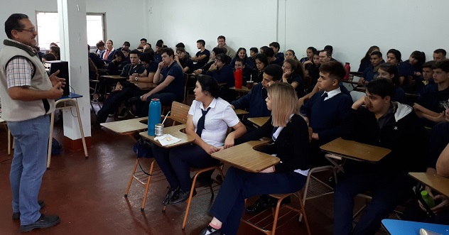 OBERÁ. El Director de Saneamiento Ambiental Herbert Castellanos brindó una charla a los alumnos del nivel secundario del instituto IPET, donde explicó el trabajo que actualmente realiza la municipalidad referido a la gestión de los residuos urbanos.