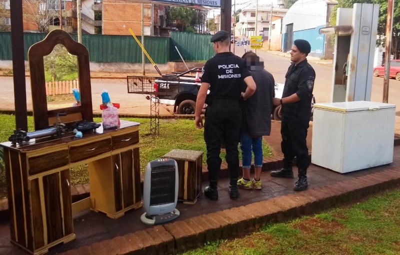 En la fecha, efectivos de la división comando Radioeléctrico Centro, recuperaron varios elementos sustraídos de la vivienda de José A. La investigación se inició a partir de la denuncia radicada por María M. de 55 años, quien quedó al cuidado de la casa de su vecino José, ubicada en calle Tucán y 2 de Mayo, donde al llegar esta mañana, observó que tras violentar el candado del portón, le sustrajeron (01) freezer, (01) modular con espejo, (01) estufa, (01) balanza, (01) maquina para hacer pastas, (01) frazada, (01) sandwichera. Tras averiguaciones practicadas, se estableció que no sería ajeno al hecho el joven ahora detenido, quien le pidió a un vecino guardar varios muebles, en razón de que se estaba mudando. Tras entrevistarse con el vecino, se corroboró que se trataban de todas las cosas denunciadas como robadas, por lo que se procedió al secuestro de las mismas. Posteriormente tras rastrillajes por el lugar, se ubicó a Ricardo M. de 24 años, sindicado como autor del hecho, por lo que fue detenido y puesto a disposición de la Justicia.