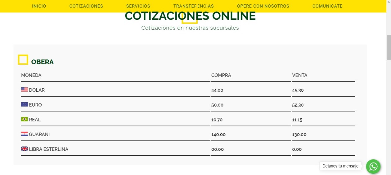 En tanto que en Oberá podemos encontrar en Konfianza Cambios, como ejemplo, que para la compra se marca a $44 y venta a $45,30.