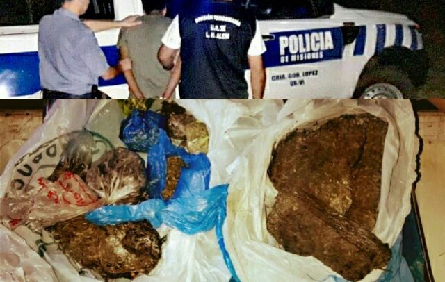Pasadas las 19 horas llamó la atención de los uniformados un transeúnte que caminaba zigzagueante sobre la Ruta, quien fue identificado como MARIO M. de 28 años; oriundo del barrio Niño Jesús de esa localidad; se denotaba que entre sus prendas llevaba algún elemento dudoso, quien exhibe primeramente un cuchillo y luego dos bolsas conteniendo lo que luego se estableció que se trataba de cannabis sativa, así también papelillos y cigarrillo de la misma droga, secuestrandole un total de 410 gs..