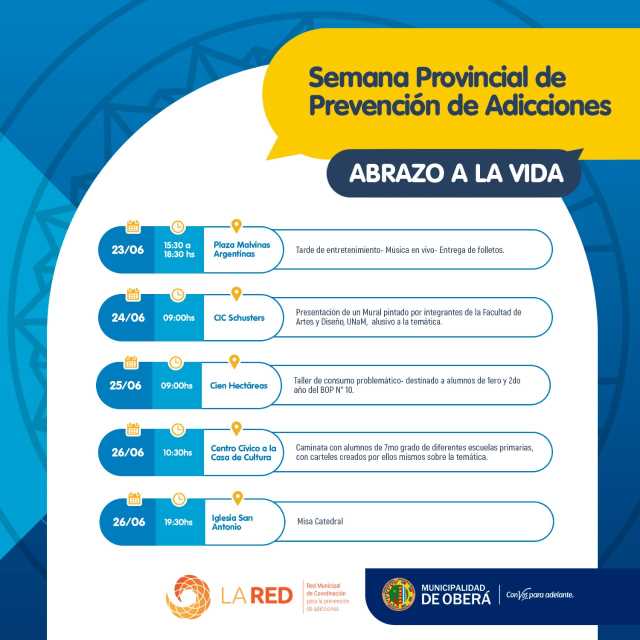 OBERÁ. Desde la Red Municipal de Coordinación para la prevención de adicciones, se planificaron diferentes actividades destinadas a la tarea de concientización, realización de talleres, eventos y una caminata.