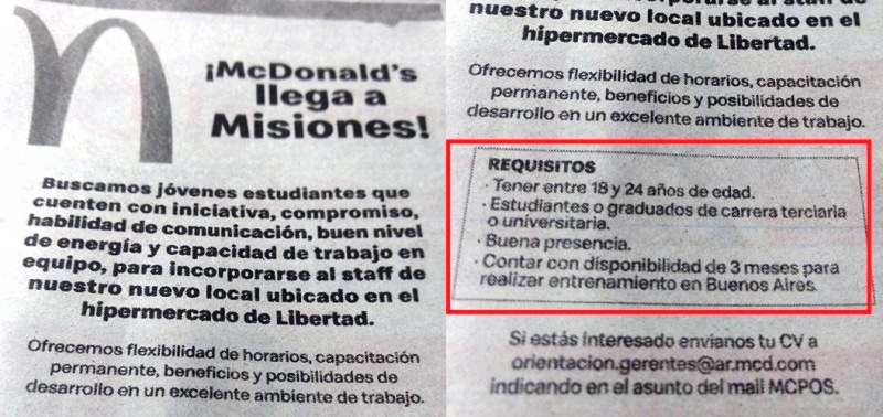 Un comentario sobre “McDonald’s pide como requisito que los postulantes sean estudiantes o egresados”