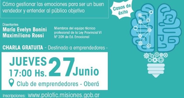 OBERÁ. El próximo jueves 27 de junio, en la sede del Club de Emprendedores (Saavedra 1861), bajo el lema “La importancia de la inteligencia emocional para clientes”; será a partir de las 17hs, con previa inscripción.