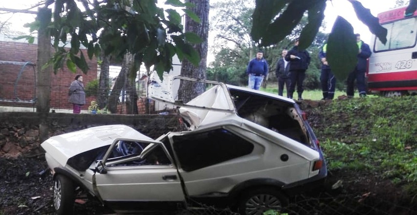 El accidente ocurrió en calle Formosa y Dr. Ziechan, Kilómetro 7 de Eldorado, donde un automóvil Fiat Spazio, dominio WPE 778, despistó y desbarrancó.