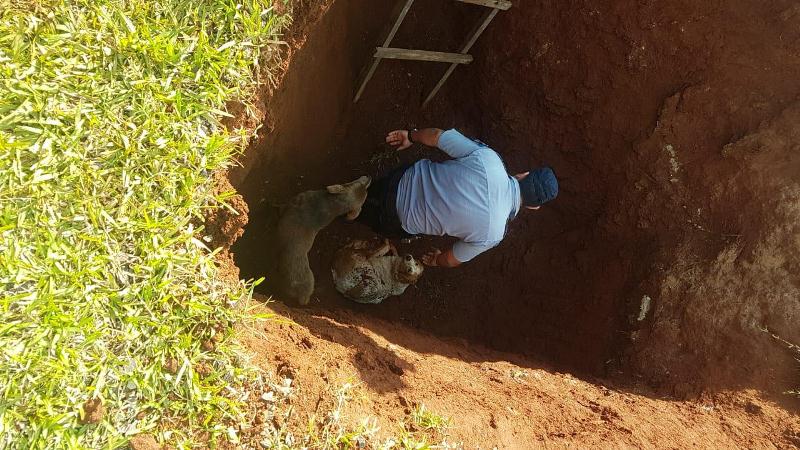 Los aullidos y ladridos fueron escuchados por efectivos de la comisaría local y vecinos, estaban en un pozo cercano al campo de deportes municipal, con una escalera y sogas los uniformados los retiraron, no tienen lesiones, ahora buscan a sus dueños o alguien que los quiera adoptar.