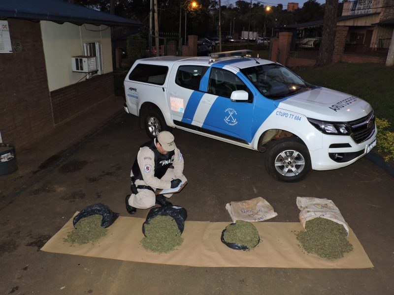 Inmediatamente Prefectura desplegó personal y medios hacia el lugar y logró interceptar a un joven que trasladaba el paquete en sus espaldas.