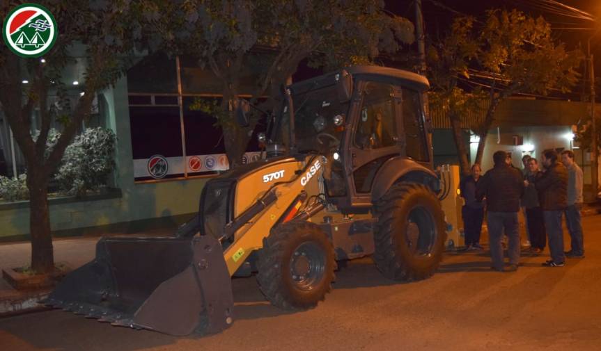 OBERÁ. Acompañado por integrantes del Consejo de Administración y Sindicatura, el Presidente de la cooperativa, Pedro “Pilo” Andersson, recibió la nueva máquina retroexcavadora destinada a mejorar el servicio de Agua Potable.