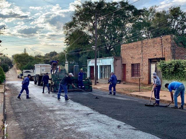 OBERÁ. La dirección de Obras Públicas realiza trabajos de pavimentación sobre calle Larrea entre Formosa y Primeros Colonizadores.