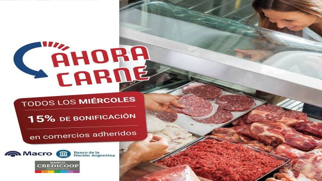 Con el programa «Ahora Carne» realizando la compra todos los miércoles y pagando con tarjetas de Débito del Banco Macro, Credicoop, Nación o con la tarjeta social del Iplyc un 15 % de reintegro.