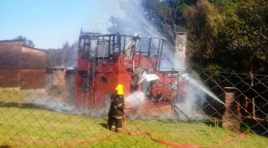 Relataron que luego de encender fuego en el hogar, constataron que en el piso superior, la pared pegada a la chimenea se estaba incendiando; logrando sacar algunos muebles que se encontraban en la planta baja.