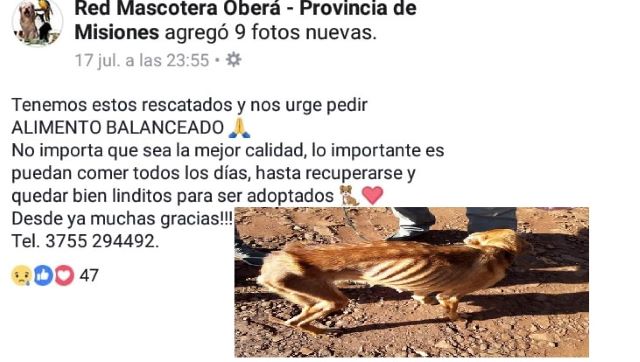 OBERÁ. Así lo informan desde la página de la red obereña encargada de dar refugio y concientizar sobre la responsabilidad de tener mascotas