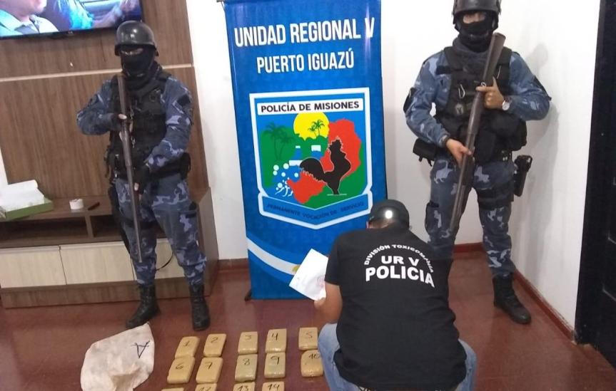 PUERTO IGUAZÚ. La Policía incautó panes de marihuana en operativo nocturno.