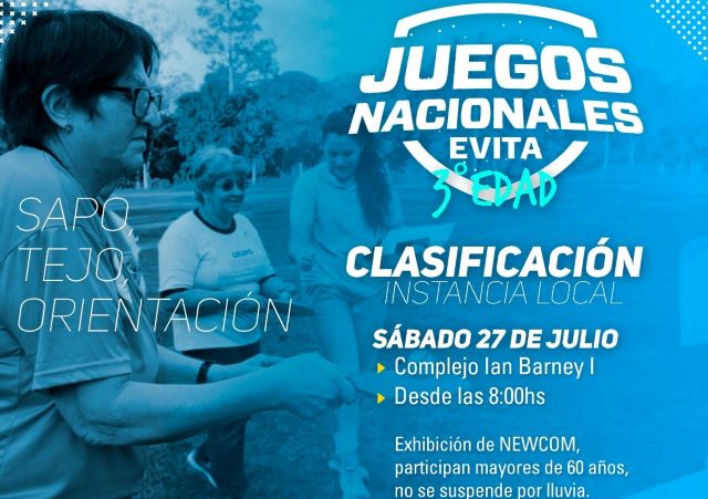OBERÁ. En la jornada, se lleva a cabo la instancia local de los Juego Evita para la 3° edad, tras suspenderse por las condiciones climáticas adversas que obligaron a la reprogramación. Los adultos mayores competirán en las disciplinas de Sapo, Tejo y Orientación; además habrá una exhibición de Newcom (vóley adaptado). Las actividades se desarrollarán en el Polideportivo Ian Barney a partir de las 15.30hs. Los participantes, deberán ser mayores de 60 años.