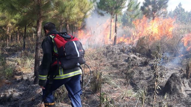 Durante casi dos horas trabajaron para apagar las llamas que dañaron árboles de eucalipto y pino.