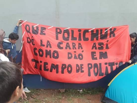 «En la fecha, manifestantes continúan su protesta frente al edificio municipal con carteles y pancartas en forma pacífica, siendo un grupo de aproximadamente (65) personas quienes se hallan con corte total de la Avenida José Ingenieros y calle Santiago del Estero, haciendose el desvío del tránsito por calles alternativas del lugar. Personal Policial realizan el ordenamiento y desvió del tránsito».