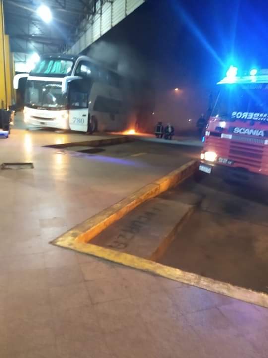 JARDÍN AMÉRICA. Un micro de la empresa Singer sufrió un principio de incendio en la Terminal de Ómnibus de esa localidad alrededor de las 5:30 de este sábado.