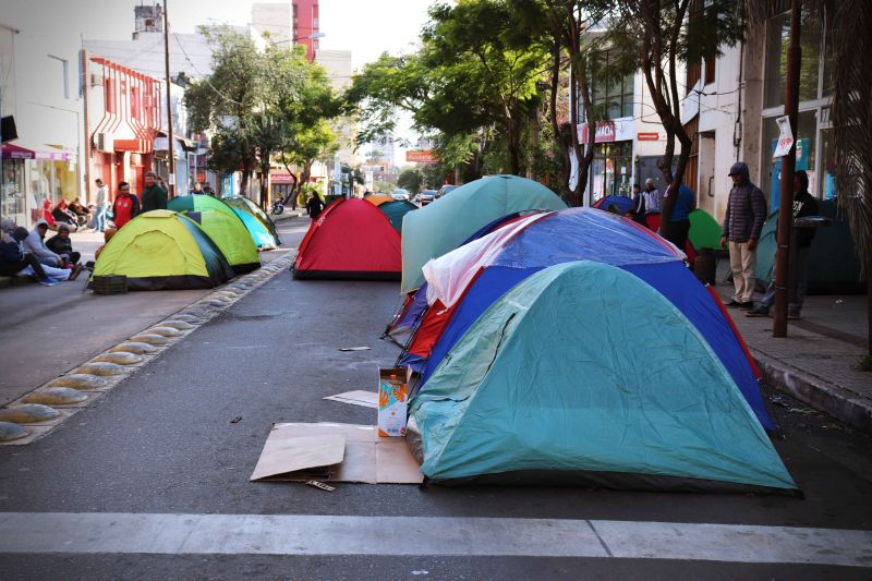 POSADAS. Desde el lunes, aproximadamente unas cincuenta personas acampan frente a Desarrollo Social de Nación en Posadas en reclamo de la firma de un proyecto de intersafra que fue presentado y daría trabajo a 540 tareferos, como lo afirma Ricardo dos Santos, representante de la Asociación de Tareferos Unidos de Oberá (ver https://infoberdigital.com/2019/08/19/50-tareferos-de-obera-acampan-frente-a-desarrollo-social-de-nacion-en-posadas-el-castigo-es-por-no-votarlo/).