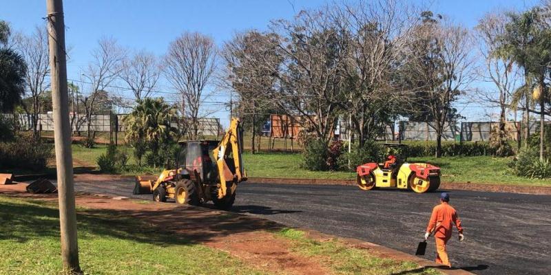 OBERÁ. La Dirección de Vialidad Provincial inició obras en el parque de las Naciones. En el predio, que es sede de la fiesta Nacional del Inmigrante, se lleva adelante este martes, la pavimentación del piletón, el acceso al centro comercial y la calle interna de acceso a los camarines del escenario mayor.