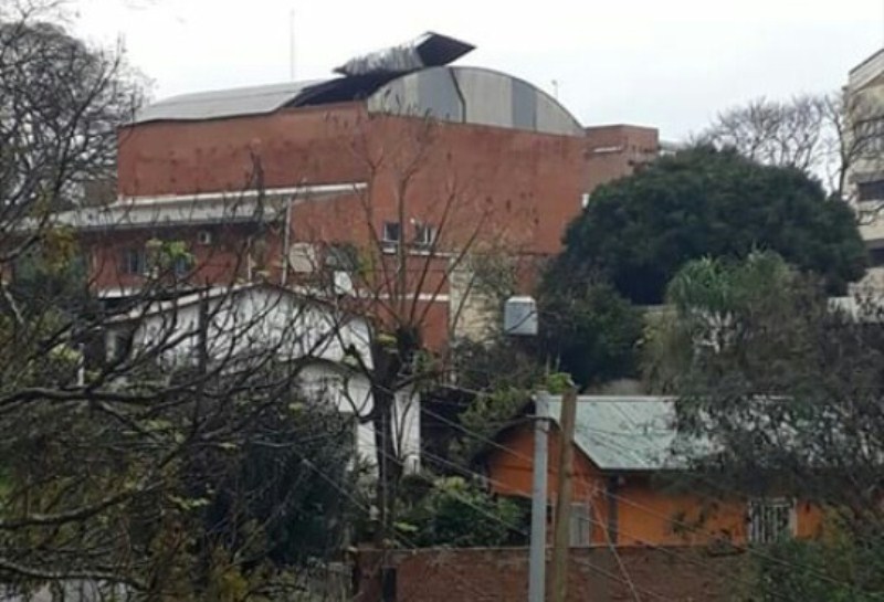 OBERÁ. Entre los afectados por el temporal, está el edificio de la facultad de Ingeniería, cuyo techo fue levantado por los fuertes vientos de este sábado, con la tormenta de Santa Rosa.
