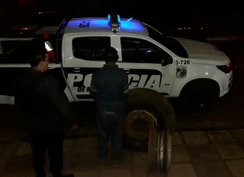 OBERÁ. Esta madrugada, integrantes del Comando Radioeléctrico Centro detuvieron a Amado C. de 54 años y recuperaron un neumático y una llanta que fueron sustraídos de una gomería ubicada en la ruta Provincial 5 en cercanías al Parque de las Naciones de esta ciudad.