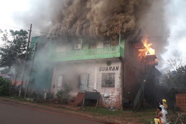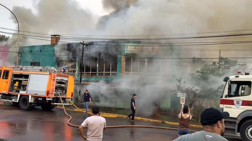SAN PEDRO. Tres dotaciones de bomberos trabajaron para extinguir el incendio de una vivienda y locales comerciales ubicados en una misma propiedad en pleno centro de la localidad de San Pedro. El fuego comenzó después de las 17:00 del lunes, y rápidamente, se extendió en toda la vivienda y sobre los cuatro locales para alquilar que se ubican sobre la avenida 25 de Mayo de esa localidad conocidos como “Los Melli”.