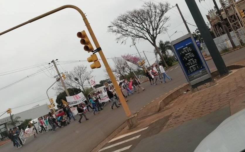 ALEM. Un grupo de manifestantes del Frente de Organizaciones en Lucha (FOL), marcharon por avenida Belgrano de Alem, en el marco de protestas nacionales con réplicas en ciudades misioneras.