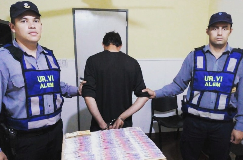 Inmediatamente, con los datos aportados por vecinos los uniformados realizaron una búsqueda del sospechoso, quien fue localizado en cercanías del lugar del hecho. En su poder, fue incautado una parte del dinero sustraído y posteriormente oculto, bajo una roca, se halló el dinero restante.