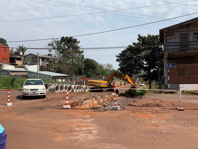 OBERÁ. La Dirección de Obras Públicas realiza tareas de entubamiento pluvial para el mejoramiento y saneamiento del arroyo que cruza por Av. Italia y Calle Ramallo.