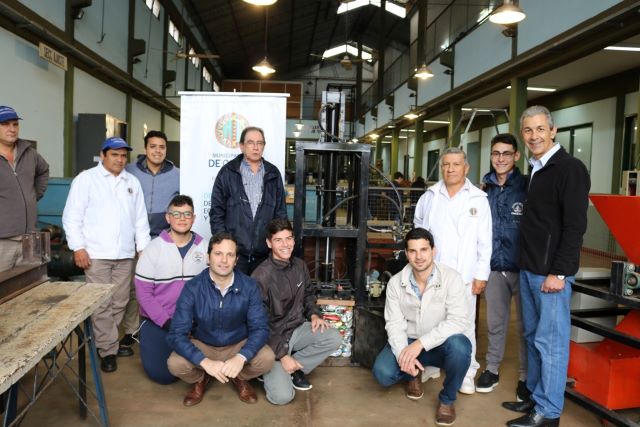 A través de un convenio marco colaboración mutua firmada hace 2 años entre ambas instituciones, esta mañana autoridades de la institución educativa entregaron al municipio una Maquina Compactadora de Aluminios fabricada por los estudiantes.