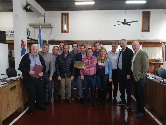 OBERÁ. En la 27° Sesión Ordinaria se entregaron reconocimientos a la Cámara Regional de Industria Producción y Comercio por sus 70 años. Estuvieron presentes el Presidente de la CRIPCO Carlos Mielniczuk y los ex presidentes de la entidad Julio De Simón, Oscar Krieger y Fabián Jamasmeie.