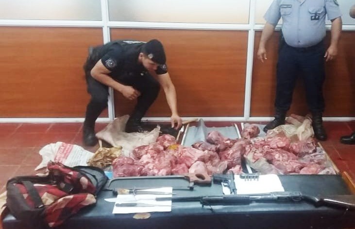 CAMPO GRANDE. El procedimiento se realizó hoy martes, a las 15 hs, tras dos allanamientos realizados en el Km 22 de la ruta Provincial Nº8, en donde efectivos de la Unidad Regional XI detuvieron a Daniel P. de 39 años, e incautaron varios cuchillos de carnicería, una pistola 9mm con cinco proyectiles, una escopeta calibre 12/70 y 90 kilogramos de carne faenada.