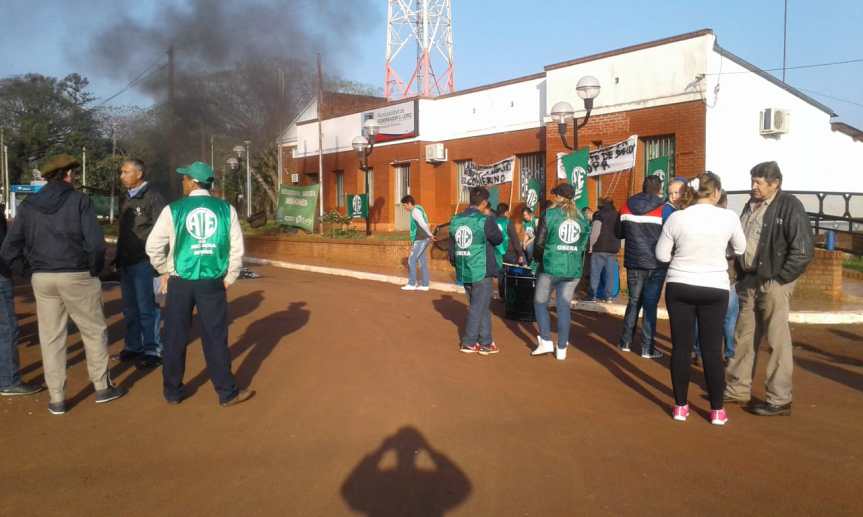 GOBERNADOR LÓPEZ. En la mañana de este jueves, un grupo de empleados agremiados en ATE se manifiestan pidiendo que el intendente pague un bono primavera y un aumento de sueldo, ya que algunos cobran salarios de $6000.