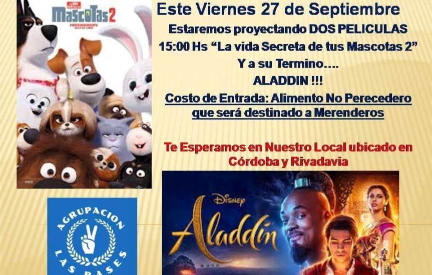 Se tratan de «La vida secreta de tus mascotas 2» y luego «Aladdin». El costo de entrada es un alimento no perecedero.