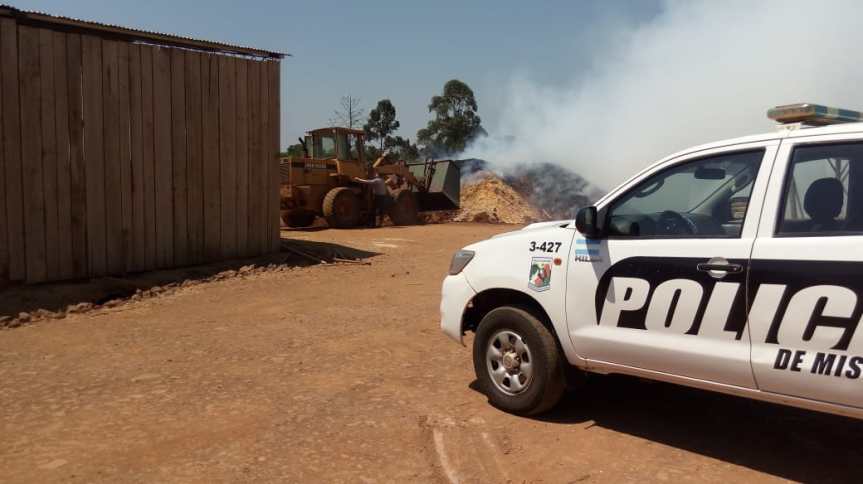 La Policía fue alertada sobre el incendio de un montículo de virutas que se encuentra a pocos metros del aserradero.