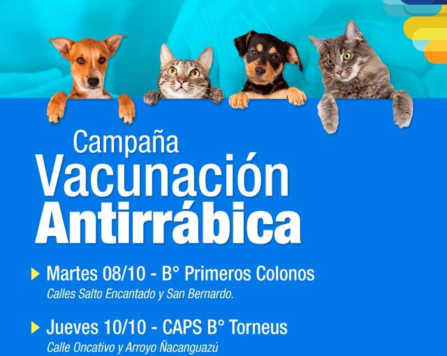 OBERÁ. Las atenciones, serán realizadas de 7:30 a 11:30 por profesionales médicos veterinarios, que de manera gratuita aplicarán las vacunas correspondientes a las mascotas.