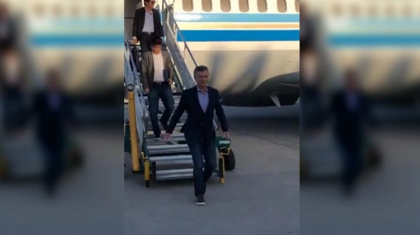 El mandatario arribó este lunes a la capital tucumana en el avión Oficial y el momento fue registrado en un video que luego se compartió en redes sociales e inmediato estalló la polémica.