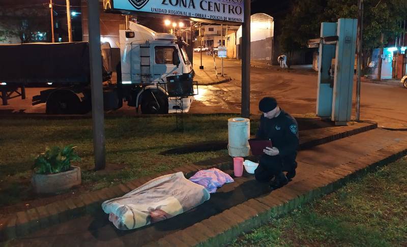Un secarropas, un tacho de plástico y una frazada, entre otros objetos fueron abandonados por un sujeto, quien al notar la presencia de los funcionarios se dio a la fuga.